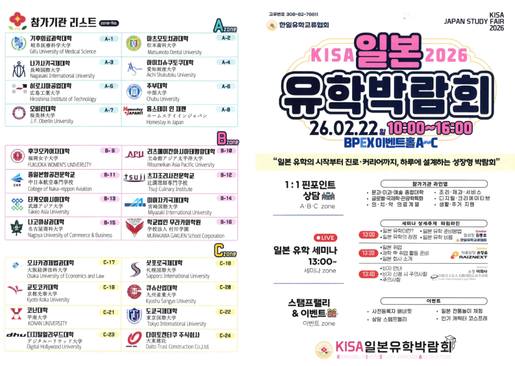 2026年2月22日にKISA韓日留学交流協会様主催のKISA日本留学博覧会に参加させていただきます。